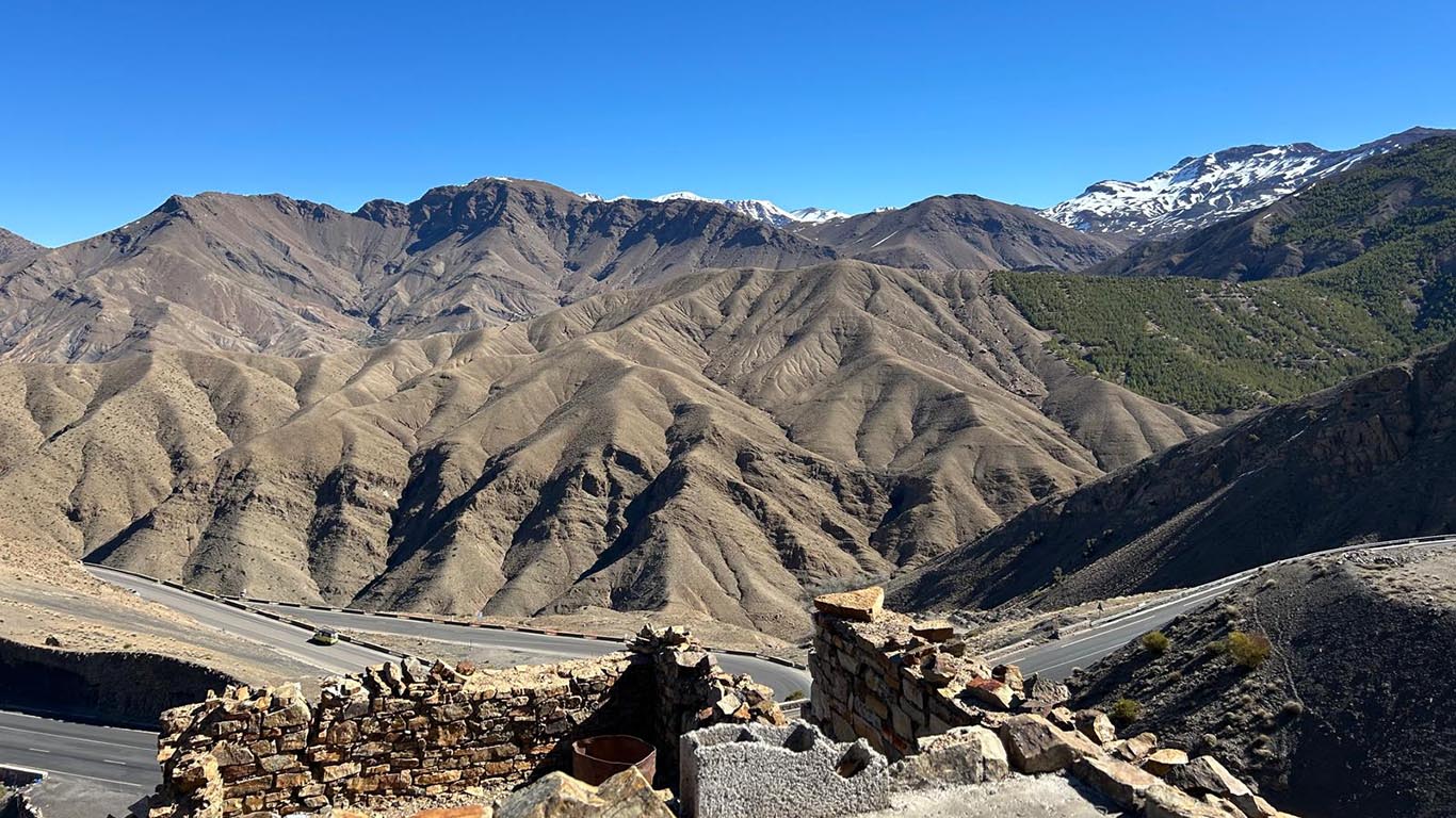 - Atlasgebergte / Imlil – Authentieke ecolodge in het bergdorp, met uitzicht op de besneeuwde toppen van de Toubkal, watervallen en berber tradities.