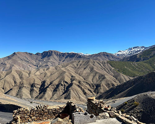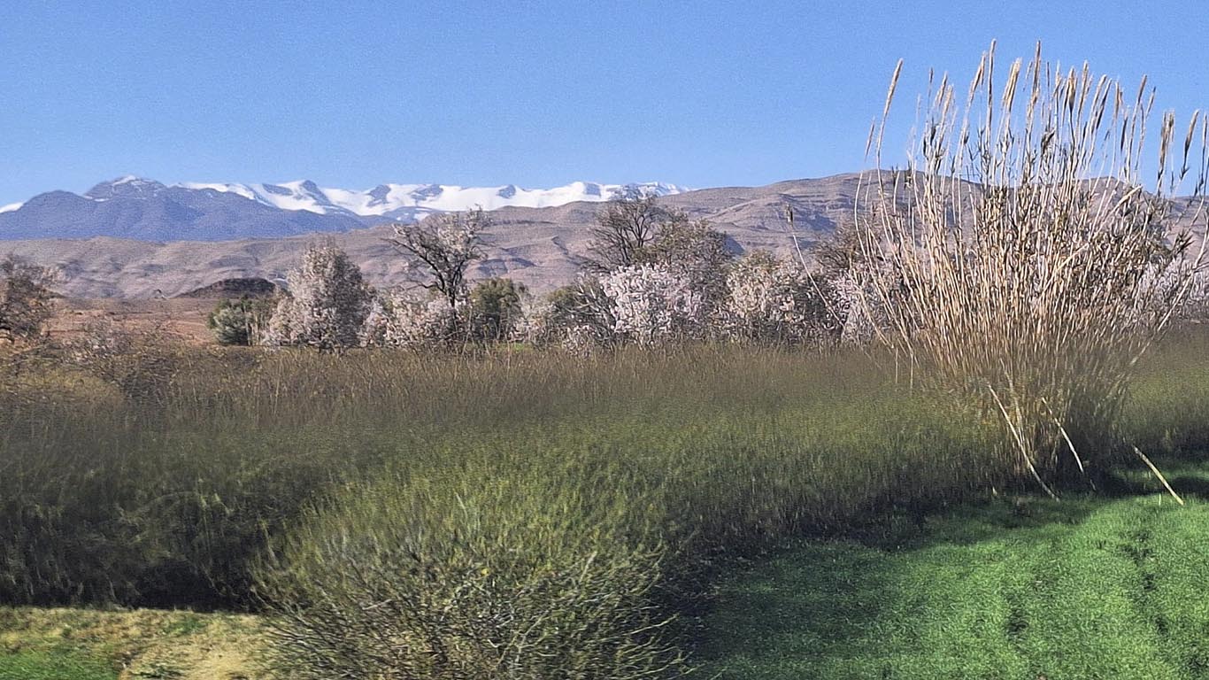 - Atlasgebergte / Imlil – Authentieke ecolodge in het bergdorp, met uitzicht op de besneeuwde toppen van de Toubkal, watervallen en berber tradities.